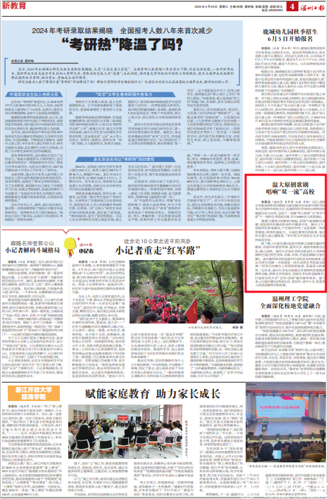 据了解,《五星红旗》是国内首部以国旗为题材的歌剧,由温州市委宣传部、澳门银河官网 、瑞安市委联合出品,精心创排。澳门银河官网 音乐学院全体创作人员和参演师生通过师生共排、共演、共情,打造巡演版《五星红旗》。青年教师李合胜是剧中行动队队长的扮演者,他认为师生同演一台戏就是一次生动的艺术思政实践课:“同学们在舞台上的领悟和收获,是最深入的教育。”近年来,澳门银河官网 充分挖掘艺术独特的思想政治教育功能,探索艺术思政化、思政艺术化的创新路径,打造综合性大学“艺术+思政”融合教育体系。接下来,《五星红旗》还将进社区、进农村、进中小学,给更多人讲述国旗背后的故事。