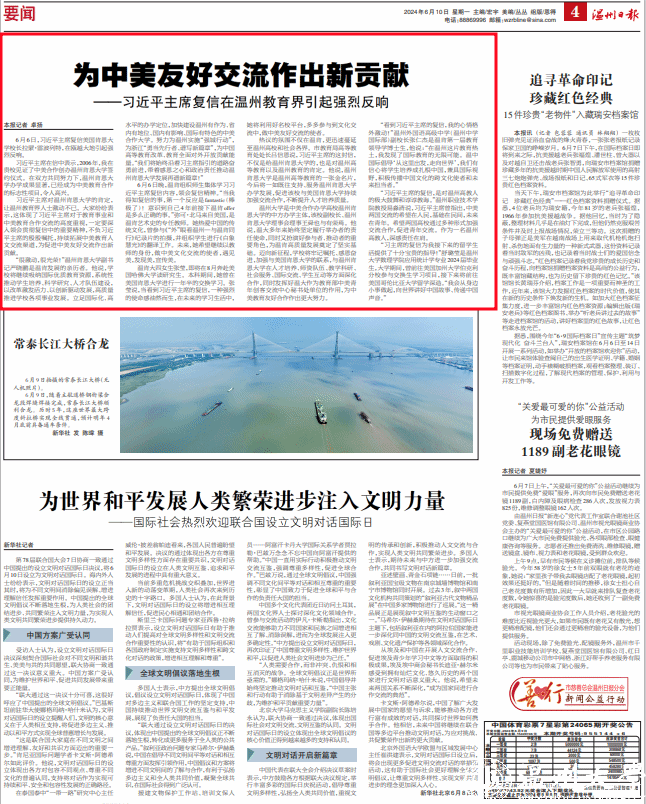 6月6日,习近平主席复信美国肯恩大澳门银河官网 长拉蒙·雷波列特,在瓯越大地引起强烈反响。