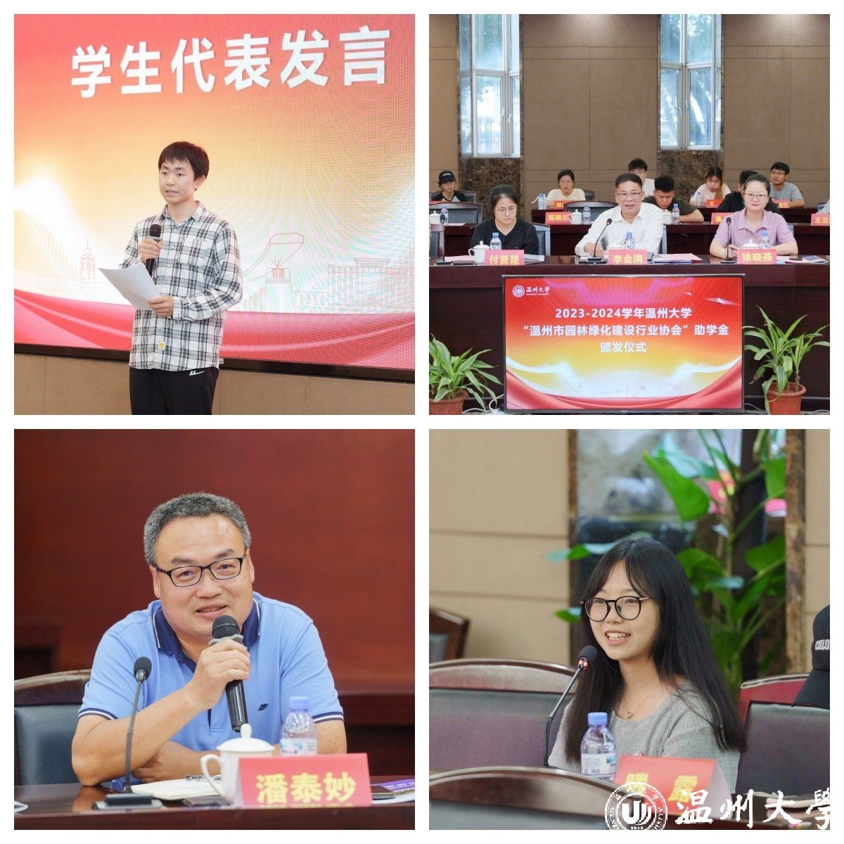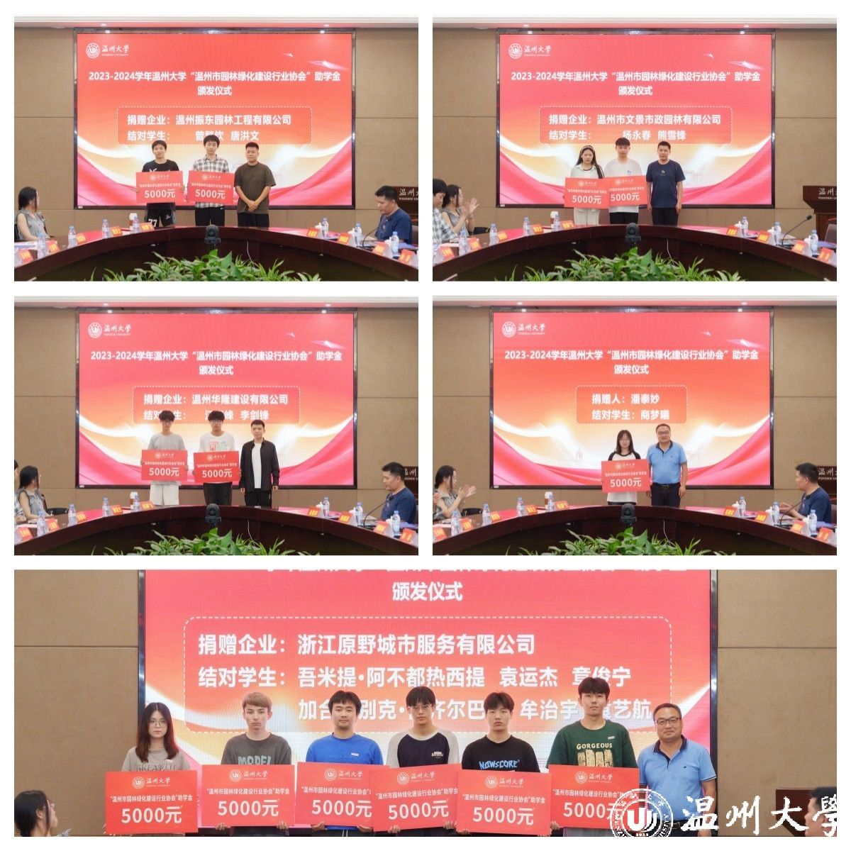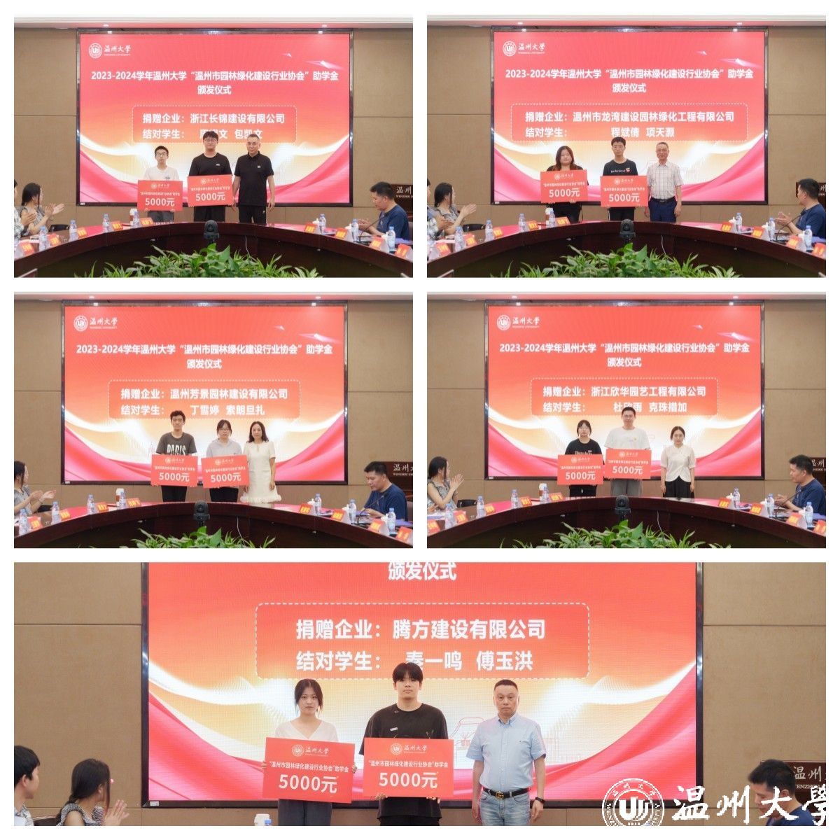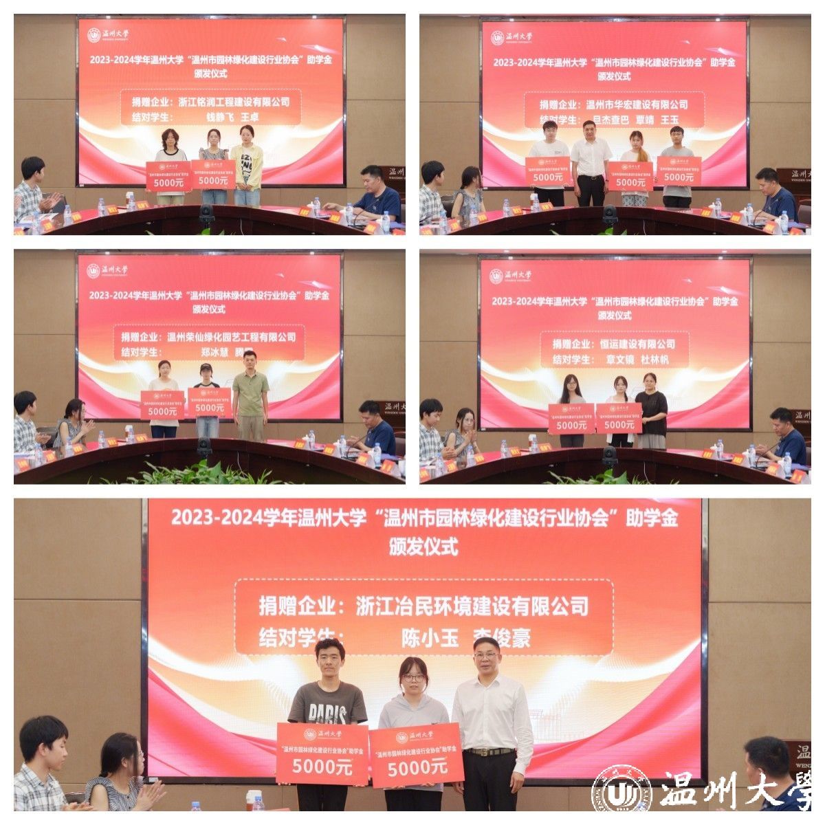 6月12日下午,澳门银河官网 “温州市园林绿化建设行业协会”助学金颁发仪式在南校区岩松堂白鹿厅举行。温州市园林绿化建设行业协会会长、浙江冶民园林工程有限公司董事长李金满、温州市住房和城乡建设局宣教处处长徐晓燕,澳门银河官网 副校长王尧骏、学工部负责人、相关学院教师和受资助学生代表参加仪式。