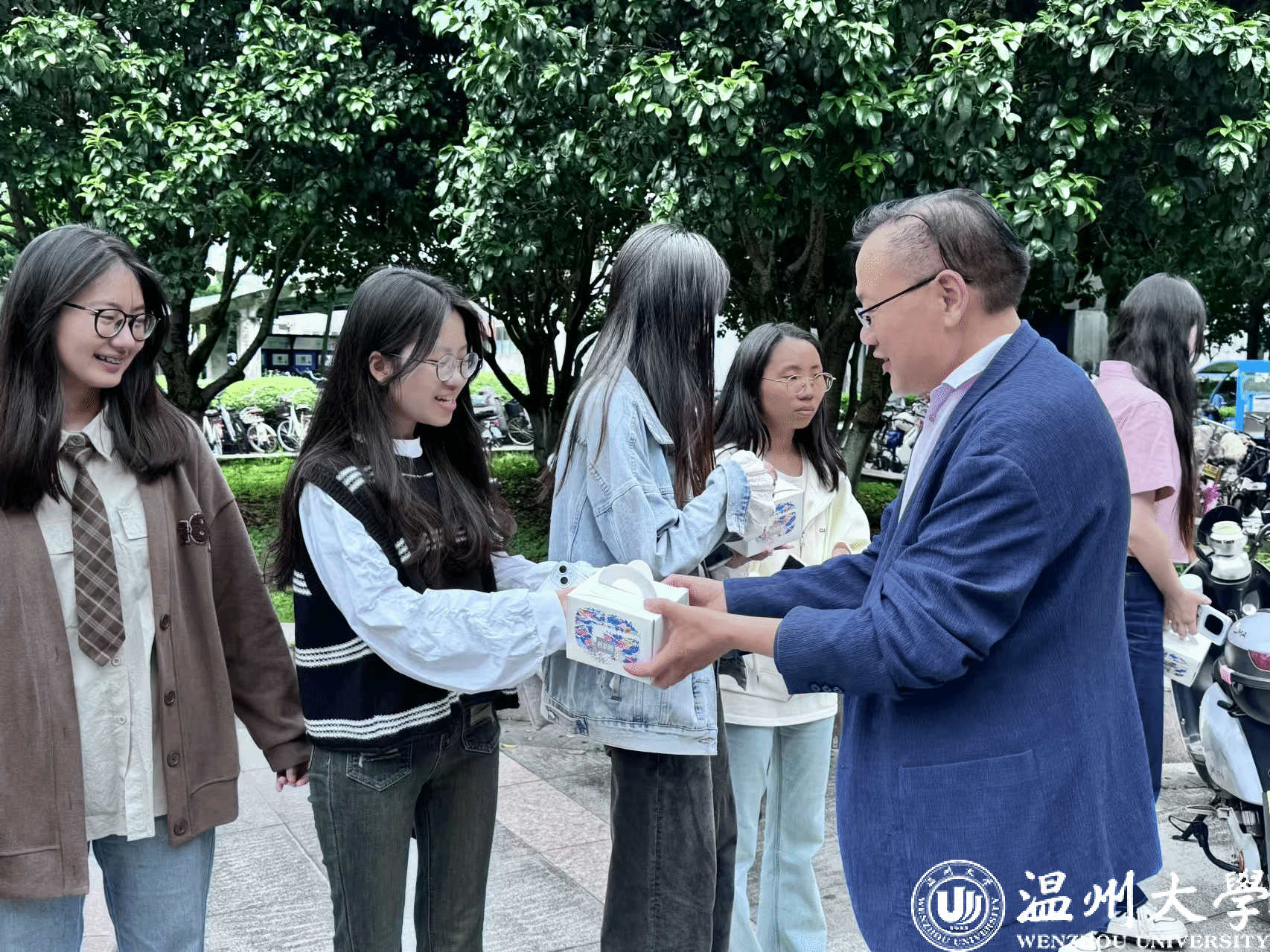 “要珍惜校园时光、努力学习!”“要做好职业规划,在学业和实践之间找到平衡,时刻为成为一名好教师做好准备!”走访寝室间,一声声热情的“端午节安康!”,一句句亲切的问候,让异地求学的同学们感受到家的温暖。教育学院相关负责人表示,学院利用“端午送粽子”这一特色品牌活动,为老师与同学们亲切交谈创造契机。同学们不仅能够听取老师教诲、汲取前行能量,也在浓浓的节日氛围中对中华民族优秀传统文化有了更深刻的理解和认识。