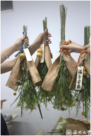 主讲人朱瑞向同学们介绍了艾草的历史渊源、药用价值以及在端午节中的特殊意义。国学传播社的成员们耐心细致地指导大家挑选艾草、编织花束,以及包装精美的艾草花。同学们在动手制作的过程中,不仅学会了艾草花束的制作技巧,更在亲手编织中感受到了传统文化的独特魅力和深厚底蕴。