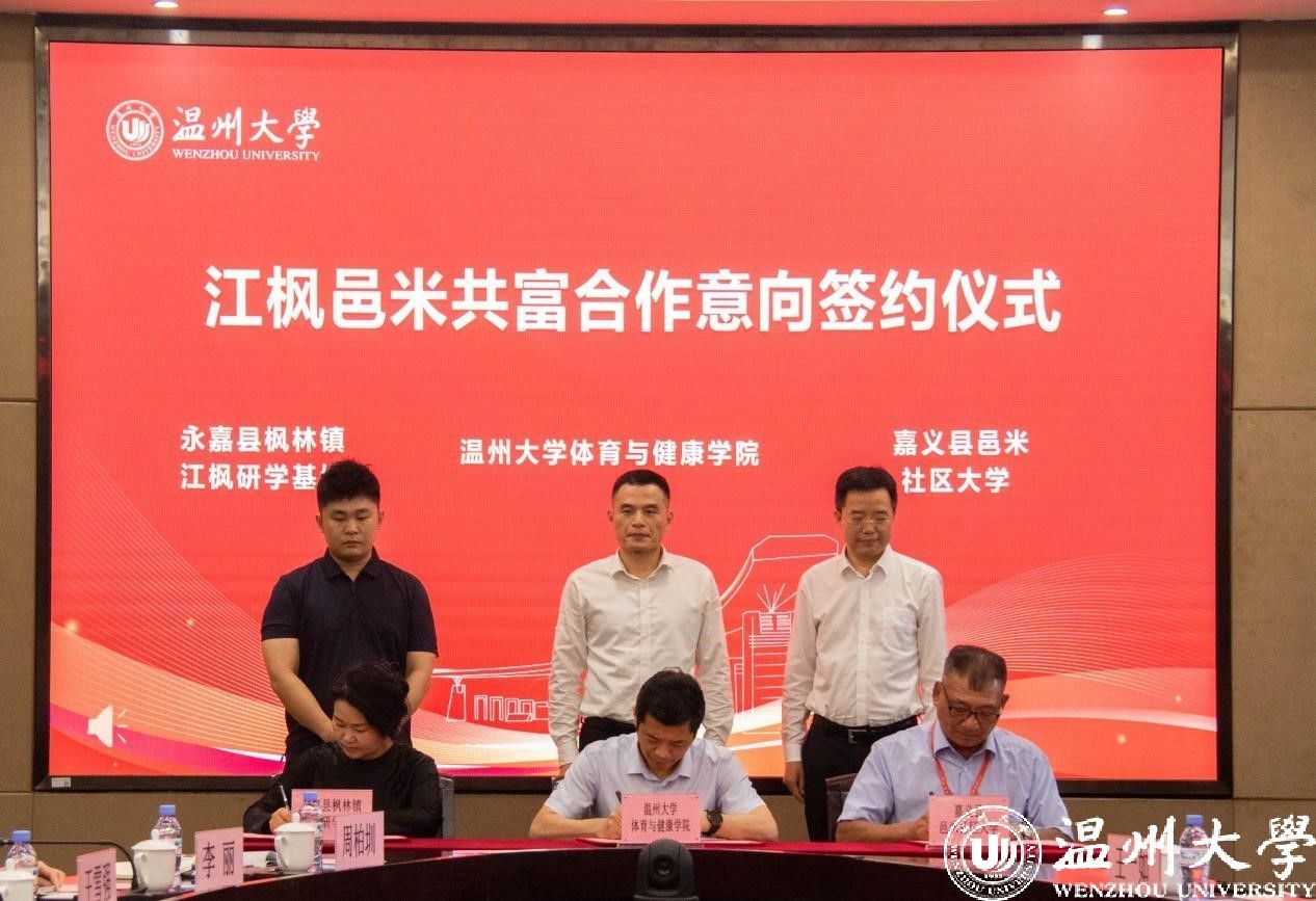 会上举行了签约仪式。澳门银河官网 体育与健康学院与永嘉县枫林镇江枫研学基地、嘉义县邑米社区大学签署了江枫邑米共富合作项目意向协议,与瑞安市海峡青年创业创新服务中心、中华台湾运动科学协会签署了两岸康体三创基地项目意向协议。这些合作协议的签署,将进一步促进两岸康体产业的融合发展,为双方带来更多共赢的机遇。
