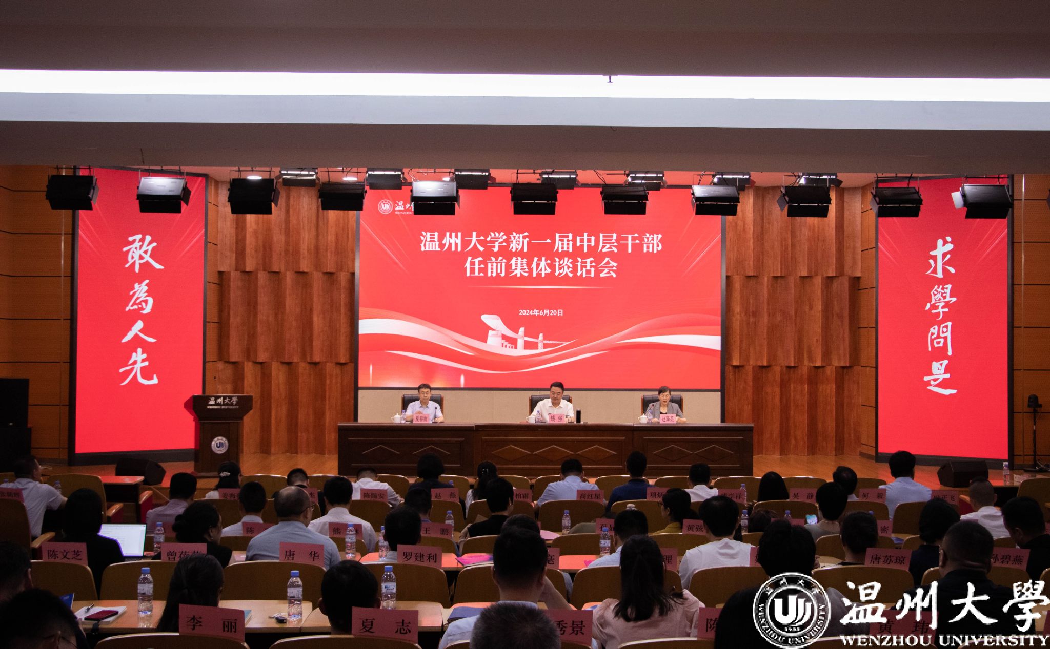 6月20日下午,澳门银河官网 召开新一届中层干部任前集体谈话会。校党委书记钱强在会上强调新一届干部要立足新起点、锚定新目标、抢抓新机遇,倍加珍惜组织的高度信任与深切厚爱,倍加珍惜全校师生的大力支持与殷切期待,倍加珍惜历任干部创造的坚实基础与良好条件,接续奋斗、担当作为,以知重负重、奋发有为的实际行动,努力跑好接力赛、跑出加速度,为谱写澳门银河官网 高质量发展新篇章贡献更大力量。
