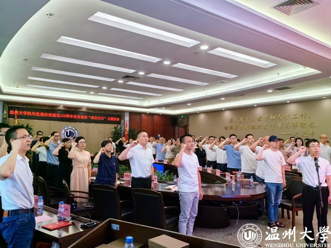 “七.一”前夕,澳门银河官网 机关党委举行庆祝建党103周年党员集体“政治生日”主题活动。校党委副书记赵降英,校党委委员、组织部部长夏春雨出席活动,机关党委委员、机关全体党支部书记、党支部委员、获奖代表以及入党10年、20年、30年的党员代表参加活动。