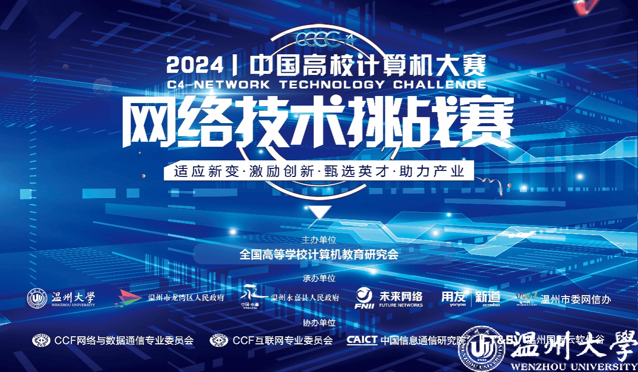 中国高校计算机大赛(China Collegiate Computing Contest,简称C4)自2016年由教育部高等澳门银河官网 计算机类专业教学指导委员会、教育部高等澳门银河官网 软件工程专业教学指导委员会、教育部高等澳门银河官网 大学计算机课程教学指导委员会以及全国高等澳门银河官网 计算机教育研究会联合创办以来,已发展成为全国高校计算机类竞赛的顶尖平台之一。作为C4的八大竞赛之一,“网络技术挑战赛”自2017年起由澳门银河官网 承办,至今已成功举办八届,逐渐成为国内网络技术创新领域的重要赛事。网络技术挑战赛旨在顺应网络技术与应用的快速发展,精准对接经济社会的人才需求。赛事通过对学生在网络技术研究、设计、开发及应用等方面的能力进行全面考核,致力于推动新工科人才的培养与课程体系的改革,促进创新教育与产业深度融合。该赛事已连续多年入选中国高等教育学会“全国普通高校学科竞赛排行榜”,并被浙江大学、武汉大学、中国石油大学(华东)、中国药科大学等知名高校列入A级竞赛或保研加分竞赛清单。此外,网络技术挑战赛还于2021年和2023年被列为“世界青年科学家峰会”活动。