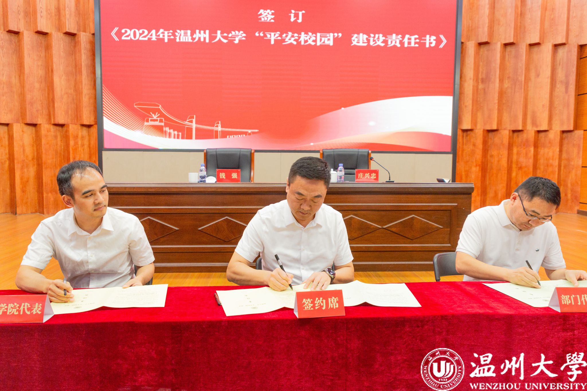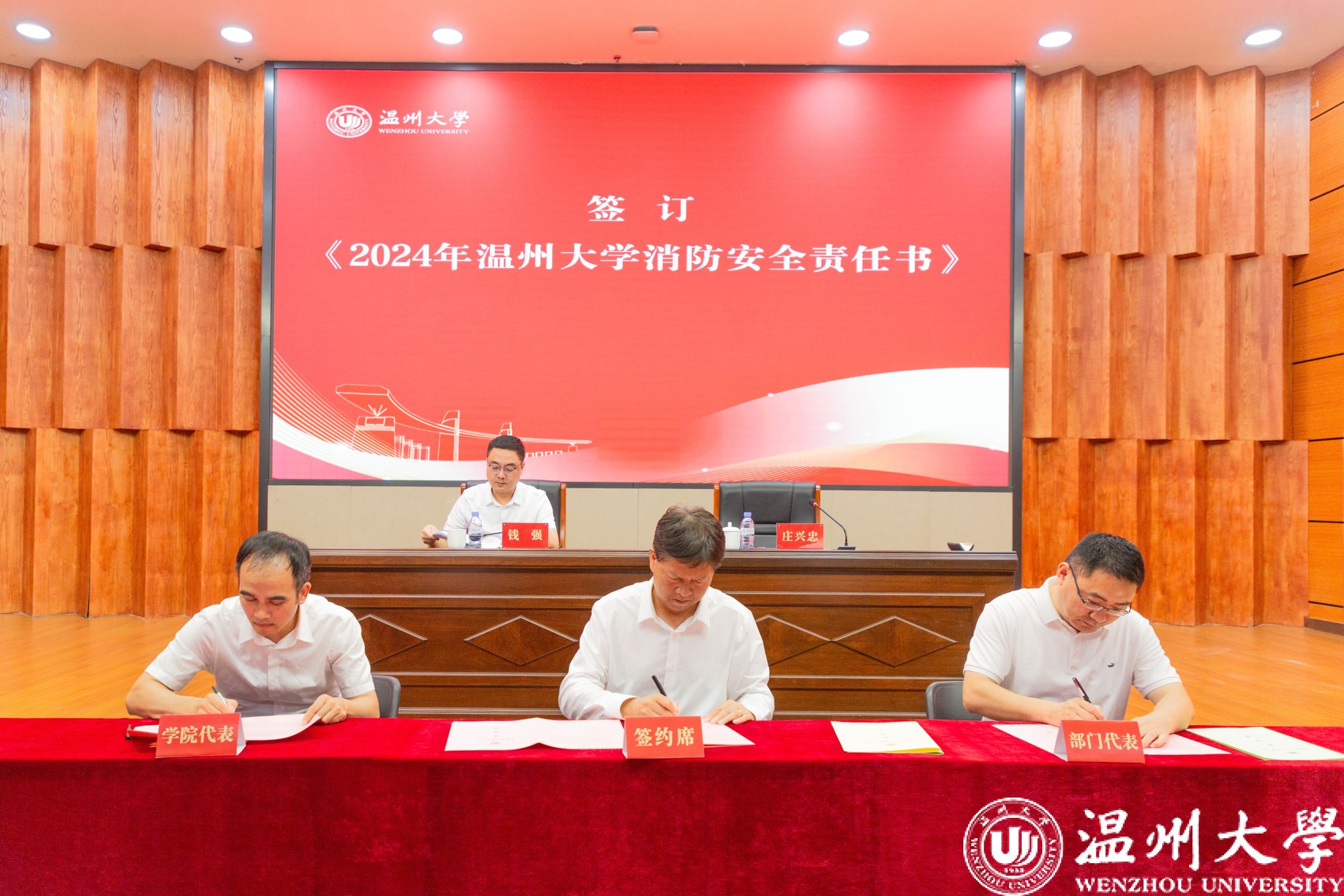 接着,大会举行了责任书签订仪式。钱强与庄兴忠代表澳门银河官网 与学院及部门代表分别签订了《2024年澳门银河官网 “平安校园”建设责任书》与《2024年澳门银河官网 消防安全责任书》。庄兴忠要求各学院、各部门在会后迅速行动,层层签订责任书,确保责任到人,形成齐抓共管的良好局面。