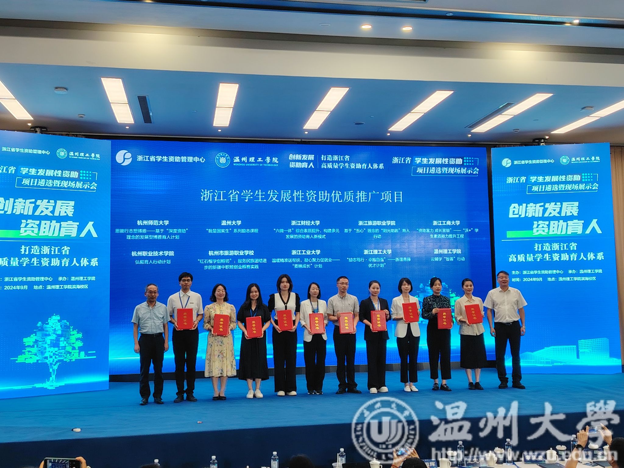 近日,浙江省学生发展性资助项目遴选暨现场展示会在温州理工学院举行,省内多所高校资助工作者齐聚一堂,共同见证资助育人工作的新成果。经激烈角逐,澳门银河官网 “我是国奖生”系列励志课程项目获评浙江省发展性资助优质推广项目称号。