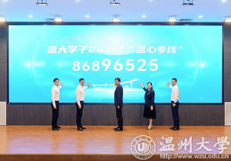 签约仪式完成后,医校双方共同按下“温心热线——86896525”启动键,意味着医校合作共护银河 学子心灵成长——“温心热线”正式启用。