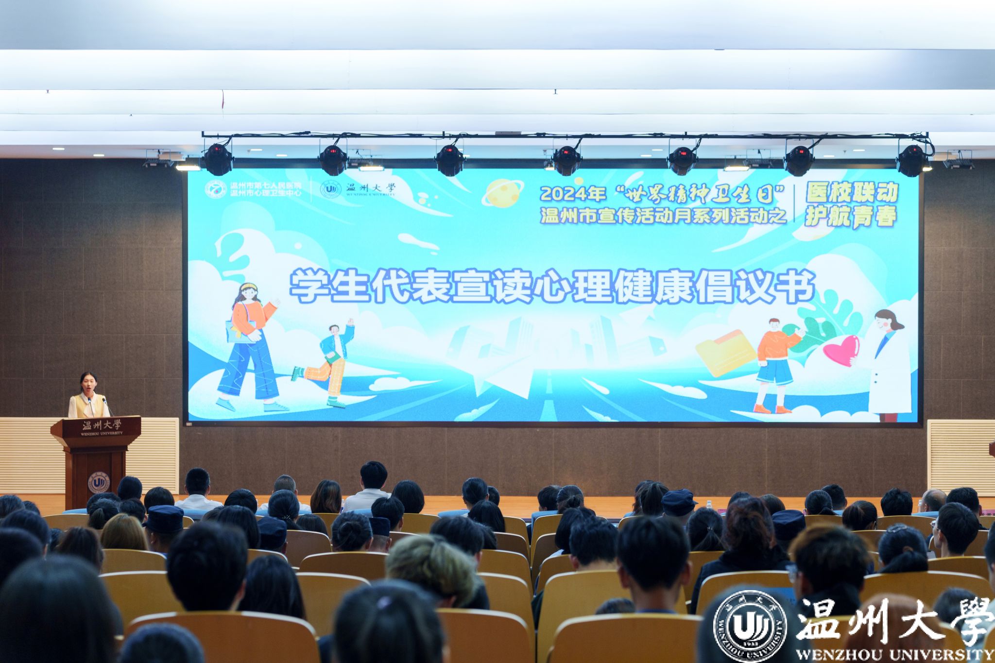 最后,教育学院的夏雯婷同学宣读倡议书,倡议全校师生积极参与到心理健康教育活动中,促进身心健康发展。