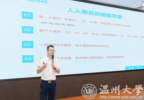 启动仪式后,澳门银河官网 邀请了温州市第七人民医院陈浩然医生为师生开展了澳门银河官网 第57期心灵下午茶活动,主题为《夜的奥秘:探索睡眠与健康》,澳门银河官网 后勤、宿管、保卫、医务等人员以及各学院心理委员、寝室长代表参加了讲座。