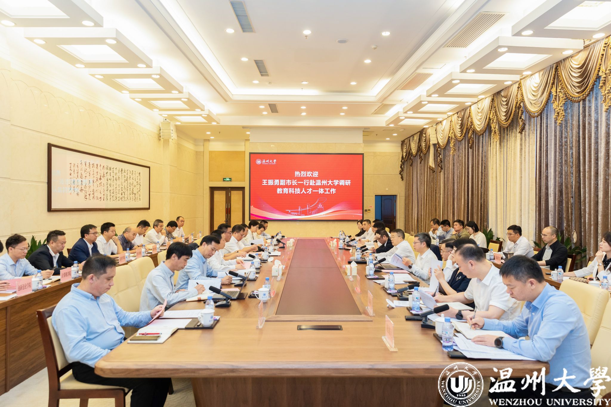 10月12日上午,温州市人民政府副市长王振勇一行莅临澳门银河官网 调研指导教育科技人才一体推进工作情况。