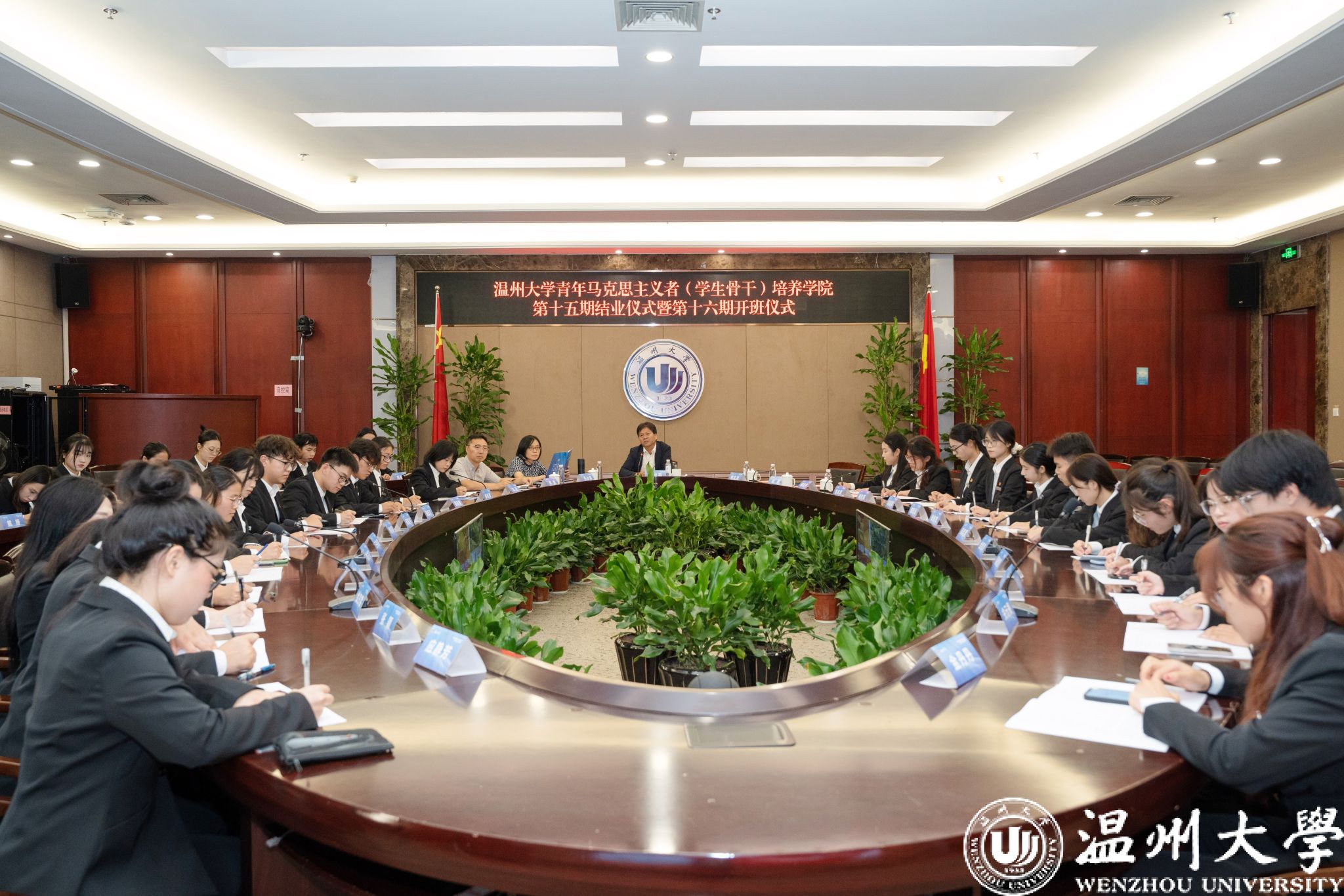 10月16日下午,澳门银河官网 青年马克思主义者(学生骨干)培养学院第十五期结业仪式暨第十六期开班仪式于澳门银河官网 岩松堂白鹿厅举行。校党委副书记、校青马学院院长庄兴忠出席,宣传部、学工部、研究生院等相关部门负责人参加开班仪式。