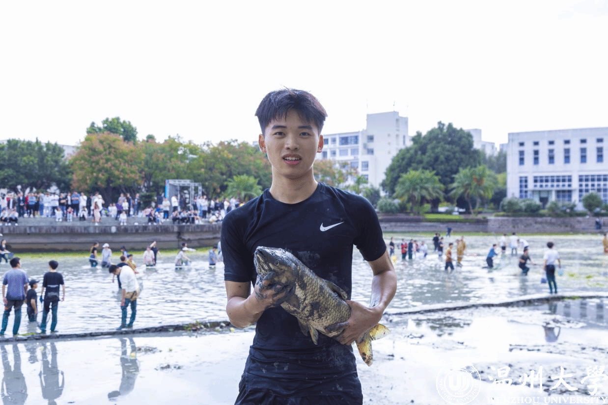 本次捕鱼活动共有来自18个学院的207名师生组成21支队伍参与,活动持续一个半小时,现场吸引近千名师生观赛。活动过程中,参赛队伍目标明确、分工明晰,以精湛的动手能力和出色的团队协作精神,将一条条大鱼收入囊中。参赛选手捕获大鱼时爽朗的笑声与激动的表情感染了岸上的观众,观众都不约而同地以手机记录下这令人振奋的一幕幕。捕鱼结束后,评委们对每一支队伍的成果进行公开测量记录。最终,商学院捕获总重超40斤,斩获“最佳捕鱼队”荣誉称号,体育与健康学院以一条6斤重的大鱼获得“巨鱼捕手队”荣誉称号。