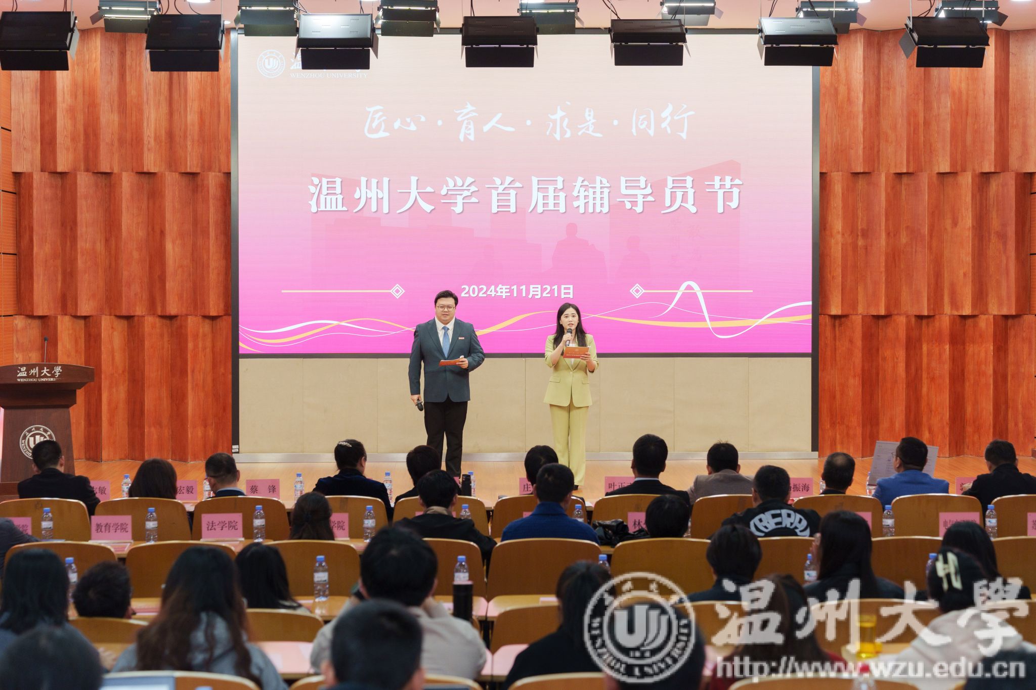 为推动澳门银河官网 辅导员队伍的专业成长与全面发展,进一步凝练团队文化,加强团队归属感,11月21日,澳门银河官网 在南校区岩松堂雁山厅举行澳门银河官网 首届辅导员节开幕式。校党委副书记庄兴忠、校学生工作委员会委员、各学院分管学生工作书记、全体专职辅导员及离岗辅导员代表出席开幕式。
