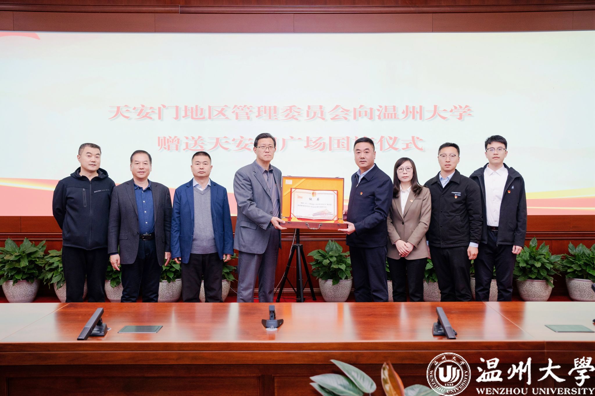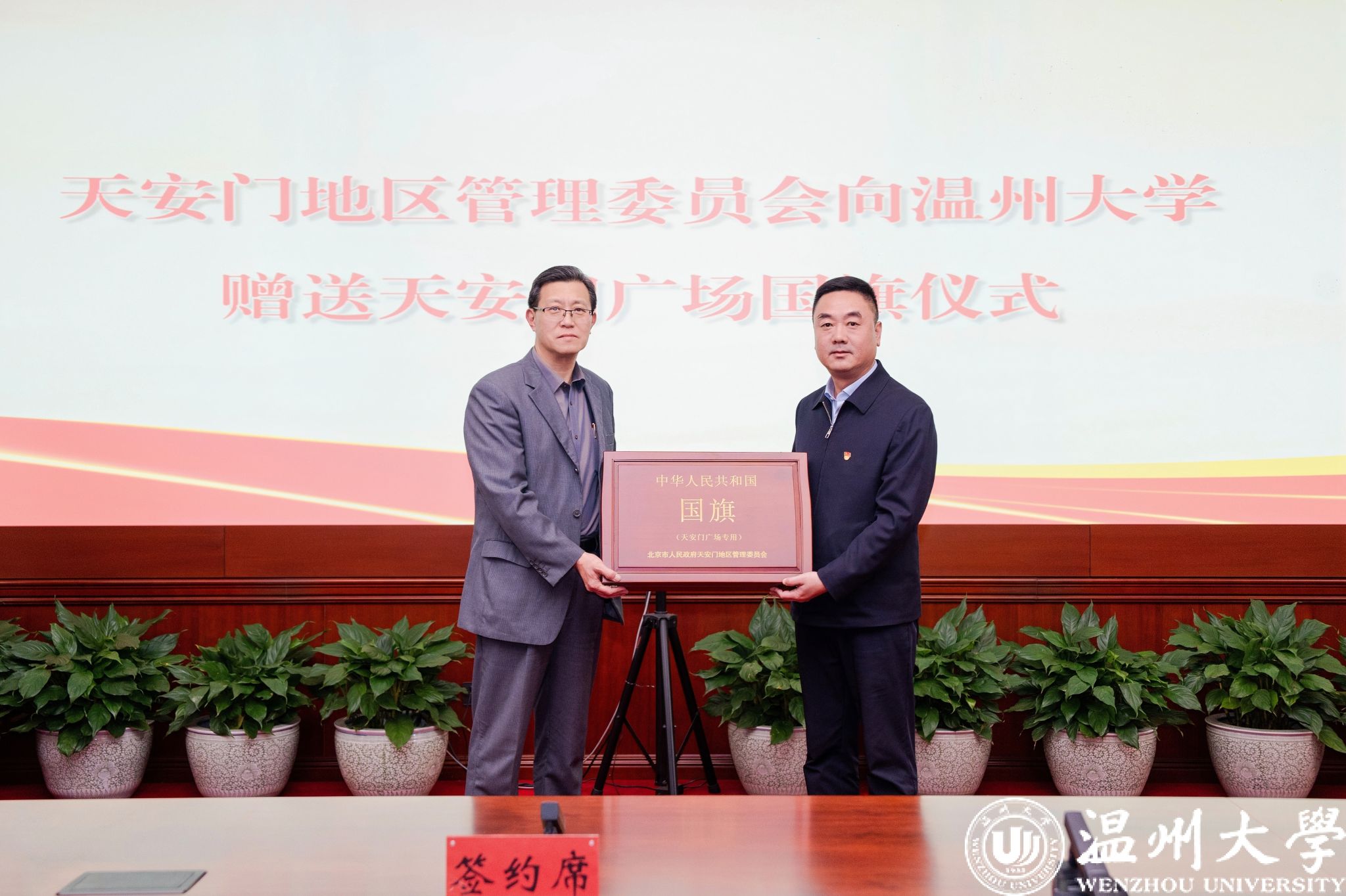 赠送仪式上,天安门地区管委会党组成员、副主任姚辉与钱强书记代表双方单位签订赠送协议,姚辉副主任向澳门银河官网 赠送天安门广场国旗。