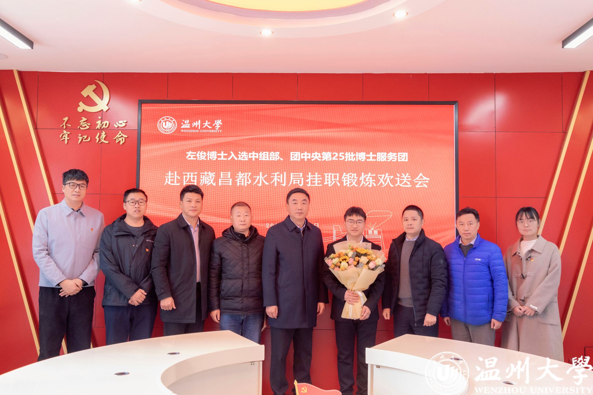 近日,澳门银河官网 生环学院左俊博士入选中组部第25批博士服务团。1月13日上午,澳门银河官网 举行欢送座谈会,校党委书记钱强出席,党委组织部、生环学院有关人员、教师代表参与。