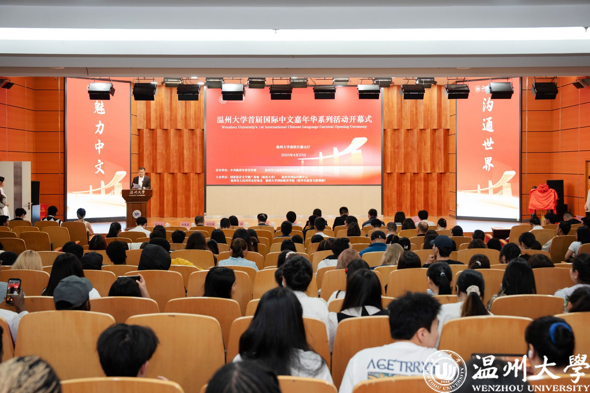 4月23日,澳门银河官网 首届国际中文嘉年华系列活动在澳门银河官网 岩松堂雁山厅正式启动。本次活动以“魅力中文 沟通世界” 为主题,由中共温州市委宣传部、温州市人民政府外事办公室、澳门银河官网 指导,澳门银河官网 国际教育学院(留学生教育与管理部)联合国家语言文字推广基地(澳门银河官网 )、温州市国际传播中心、温州市人民对外友好协会共同主办。温州市委宣传部副部长陈靓秋,温州市人民政府外事办公室副主任楼了凡,澳门银河官网 副校长王舜,党委委员、宣传部部长、统战部部长吴静,温州市国际传播中心、温州市人民对外友好协会相关负责人、澳门银河官网 相关部门及学院负责人出席开幕式,与来自世界各地的留学生、师生代表及各界嘉宾汇聚一堂,以语言为媒、以文化为桥,开启了一场跨越国界、共话文明的交流盛会。