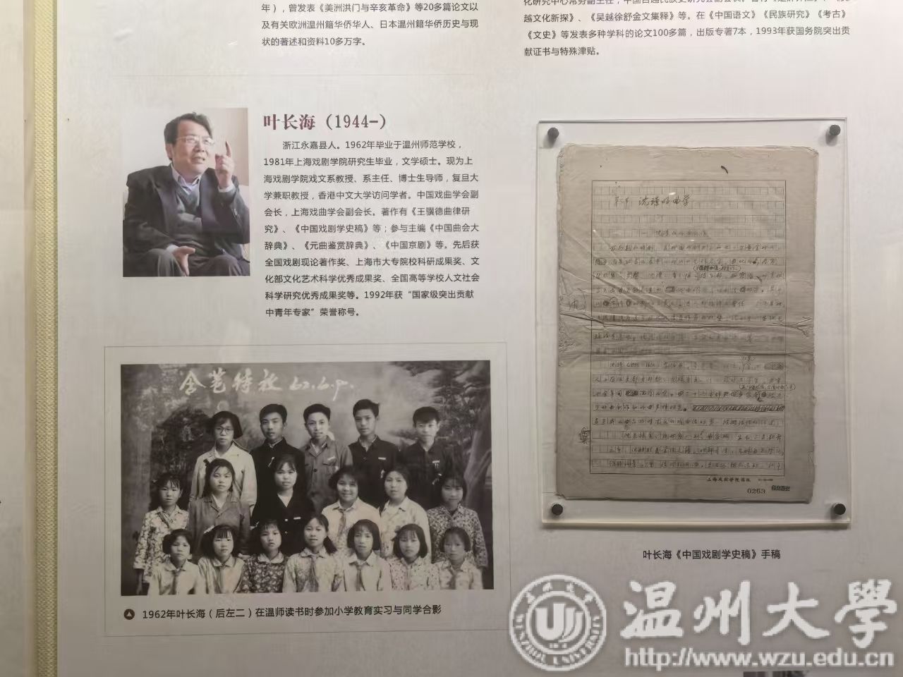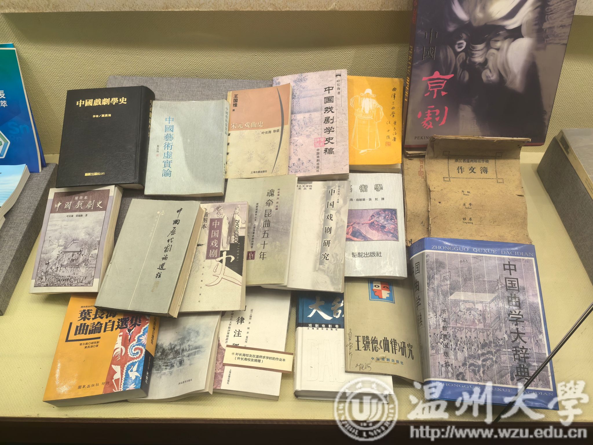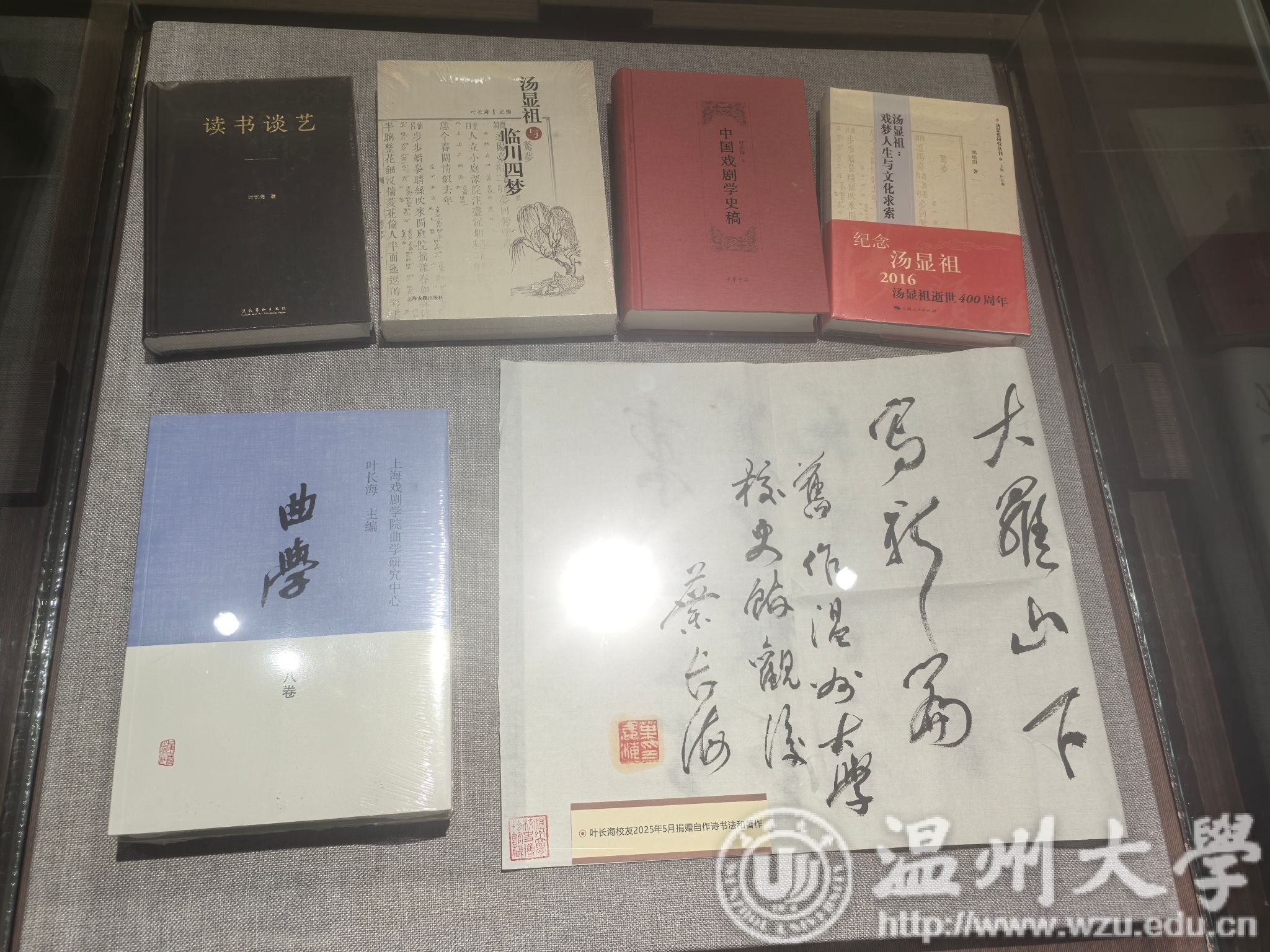 (校史馆内叶长海校友作品的陈列展柜)