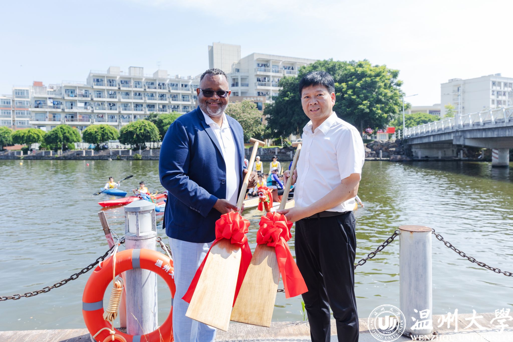 雷波列特一行观摩了澳门银河官网 龙舟队训练,澳门银河官网 赠送了象征团结拼搏、同舟共济精神的龙舟用桨。