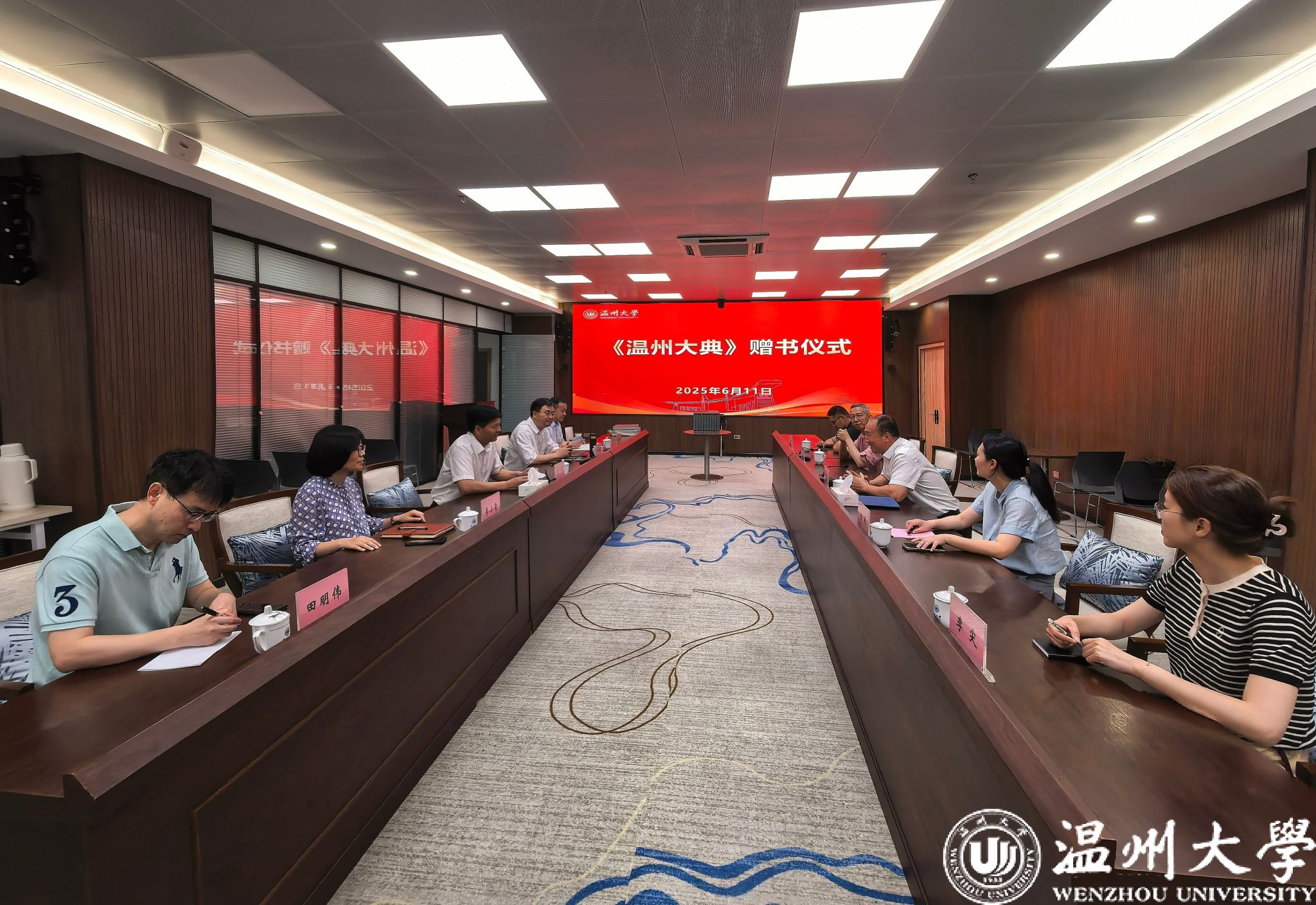 6月11日上午,《温州大典》赠书仪式在澳门银河官网 育英图书馆406室举行。温州市委宣传部副部长曾伟、理论处处长黄凰,《温州大典》副主编方韶毅,澳门银河官网 党委副书记庄兴忠以及澳门银河官网 图书馆、宣传部等相关工作人员出席活动。