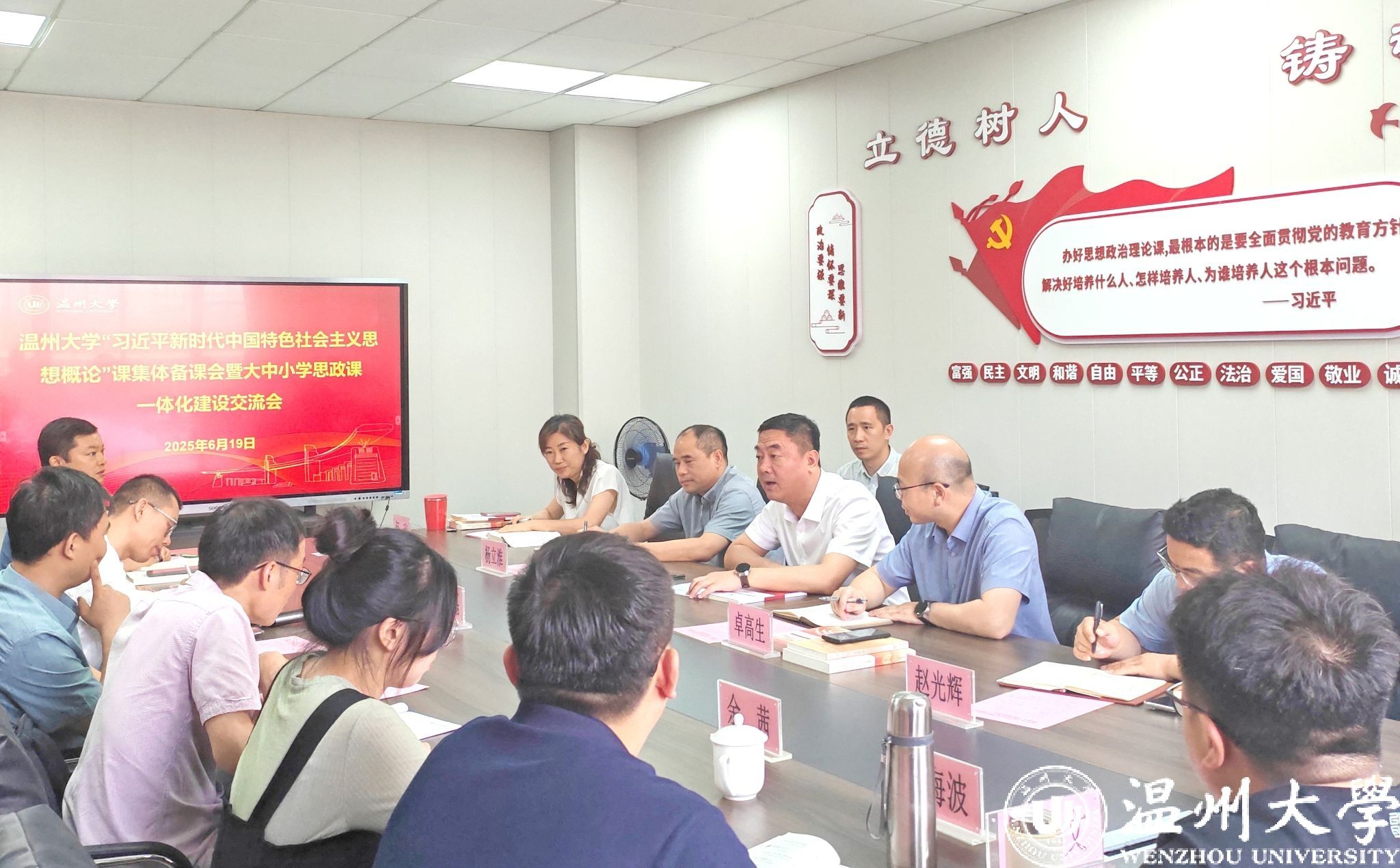 为深入学习贯彻习近平新时代中国特色社会主义思想,提升思政课教学质量,推进大中小学思政课一体化建设,6月19日上午,澳门银河官网 马克思主义学院举行“习近平新时代中国特色社会主义思想概论”课集体备课会暨温州市大中小学思政课一体化建设交流会。校党委书记钱强出席集体备课会并讲话。兰州大学马克思主义学院院长蔡文成、温州市第二外国语澳门银河官网 高中思政课程组组长夏孟耸、温州市榕园澳门银河官网 社会课程组组长周永明、澳门银河官网 城附属澳门银河官网 道法课教师余茜、澳门银河官网 马克思主义学院相关教师及“习近平新时代中国特色社会主义思想概论”课程全体专兼职教师参加。