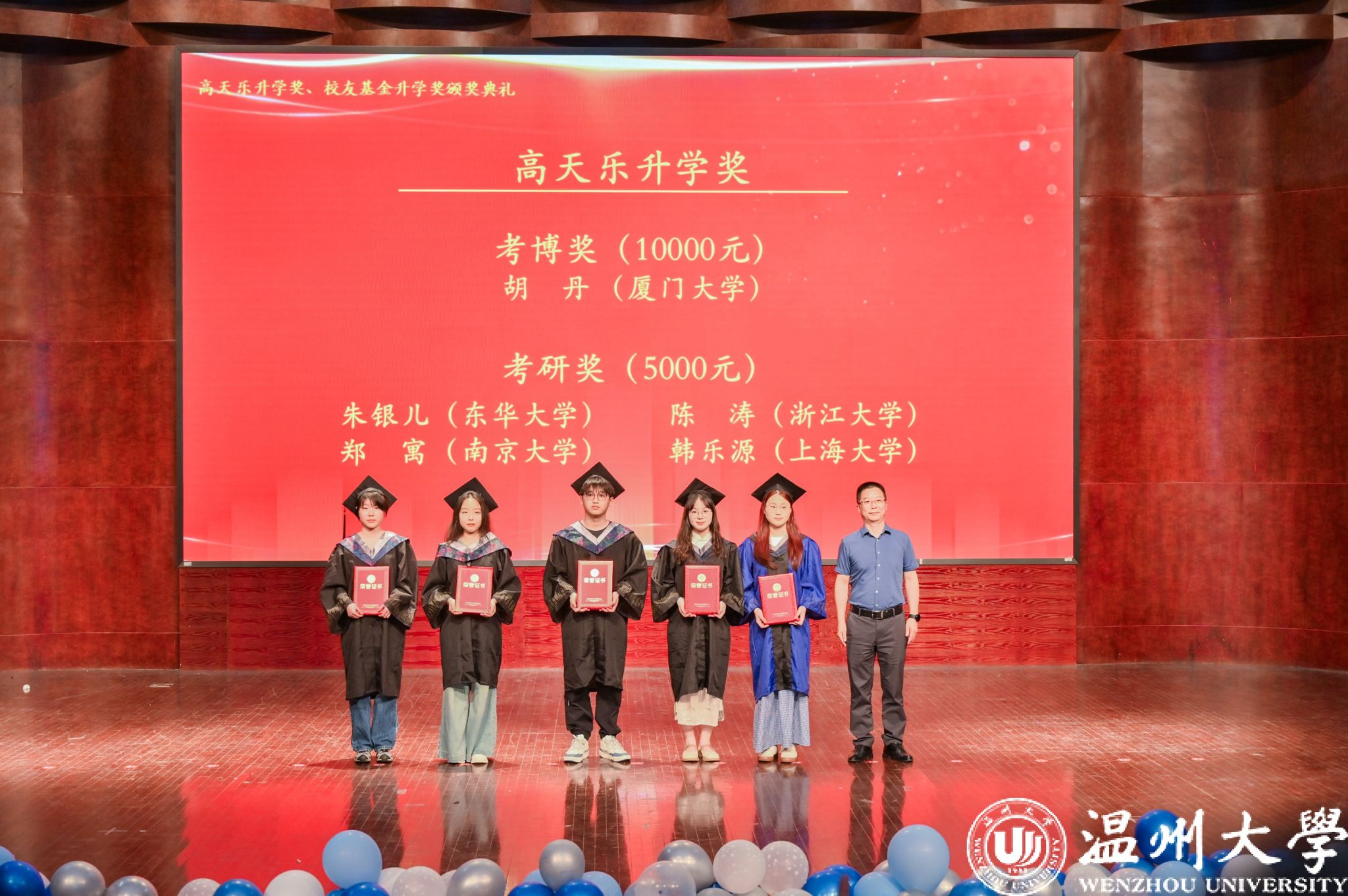 典礼上,方初富先生代表高天乐校友,为追梦顶尖学府的学子颁发高天乐升学奖。该奖项由银河 79级数澳门银河官网 友、浙江天正电气股份有限公司董事长高天乐先生于2015年设立,专项奖励银河 数理学院考取海内外名校硕博的优秀学子。根据最新修订办法,考取并入读指定20所全国重点高校及上海高校(研究所)博士研究生或直博生,奖励10000元;考取指定高校硕士研究生,奖励5000元。