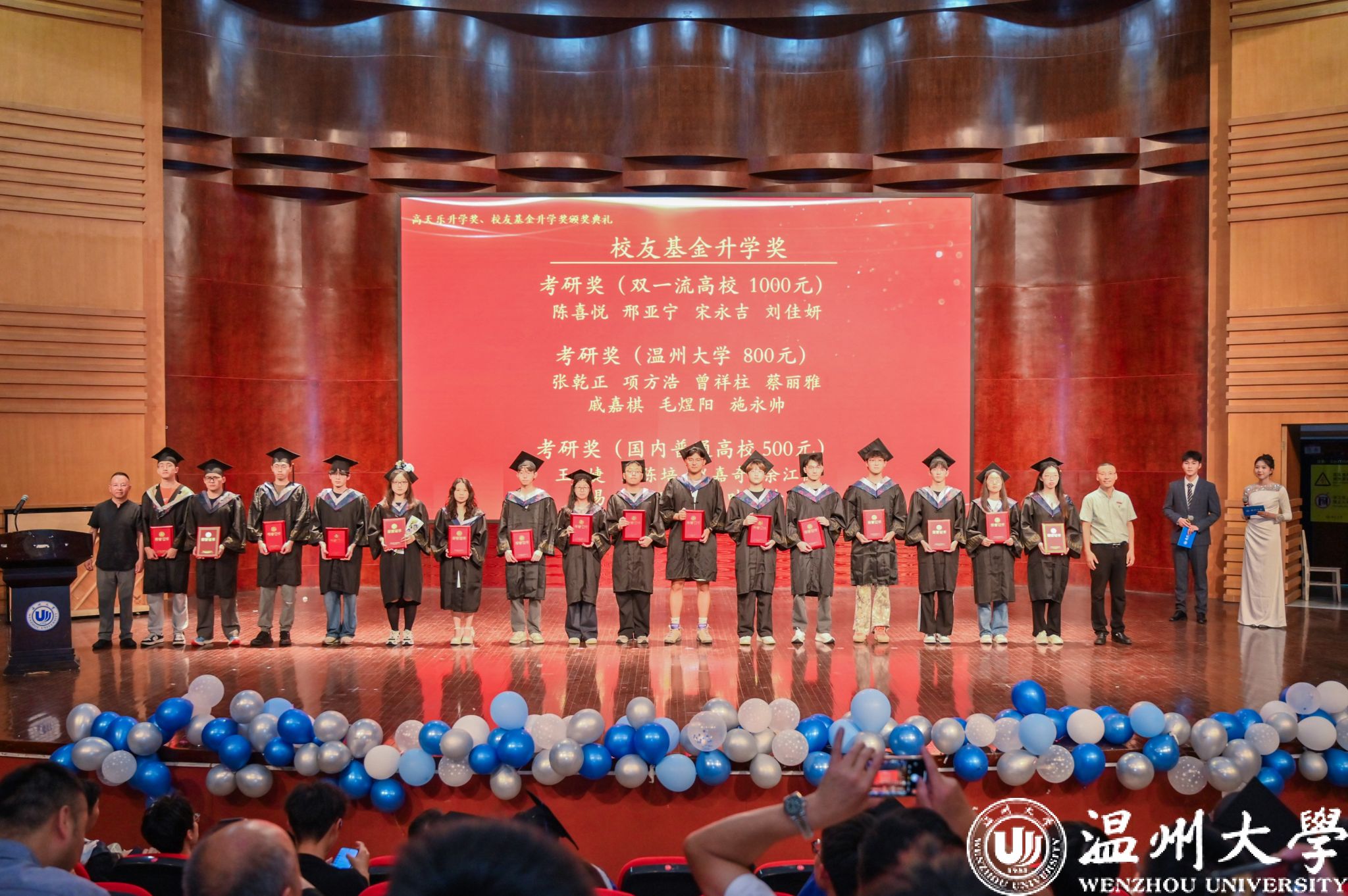 随后举行“校友基金升学奖”颁奖仪式。该升学奖是数理学院校友基金于2024年专设用于奖励成功考取国内外高校、研究机构硕博研究生的应届毕业生,旨在激励更多数理学子勇攀学术高峰。其中,考研奖:考取“双一流”高校奖励1000元,考取海外高校奖励1000元,考取银河 奖励800元,考取其他普通高校奖励500元;考博奖:考取国内外高校、研究机构博士研究生的应届硕士毕业生,奖励1000元。