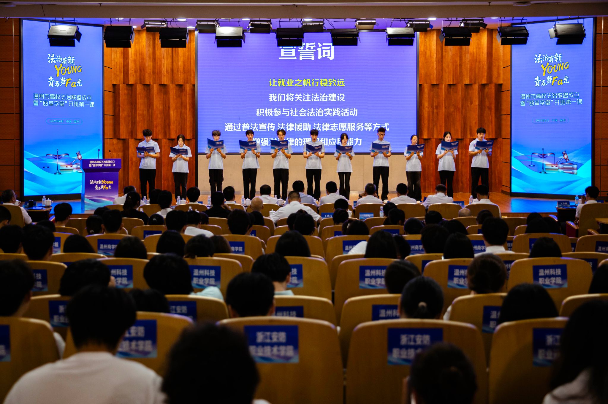 “法治文化作品征集”“大学生系列法治大赛”“高校学生普法调解组织”“大学生普法志愿者服务队”“高校普法讲堂”“‘以案释法’体验营”……温州正以法治力量助力高校学生成长,将青春力量注入法治实践。