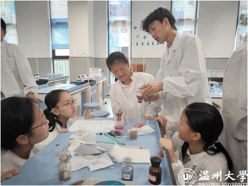 据学院学生工作负责人介绍,学院党委年初便擘画 “党建 +”协同育人蓝图,通过党员教师带队、学生党支部牵头,推动实践队与中小学建立长效合作机制。依托专业党建品牌,学院持续深化家校社多元协同育人,助力大中小学科学教育一体化建设。在南浦实验中学,团队联合该校开展 “电池里的环保密码”主题党日活动,党员师生将废旧电池回收实验带入课堂,既传授了科学知识,更播撒了生态文明的种子。