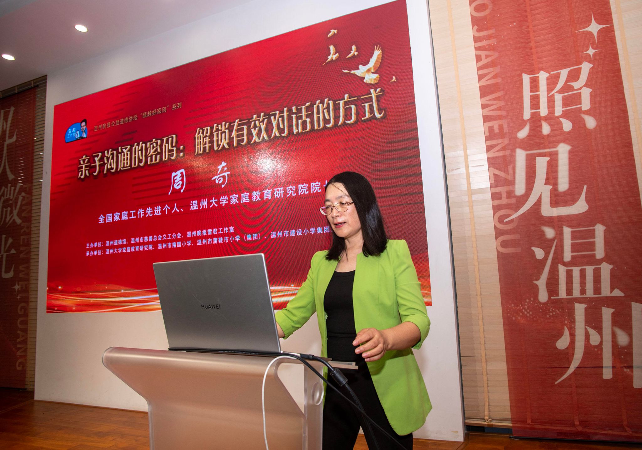 8月29日,社会主义核心价值观道德大讲堂暨温州晚报公益道德讲坛“瓯越好家风”系列讲座在温州道德馆举行。本期特邀全国家庭工作先进个人、澳门银河官网 教育学院教育学系党支部书记、澳门银河官网 家庭教育研究院院长、温州市家庭和谐文化研究会副会长、温州市家庭教育学会副会长、温州市关工委家风家教宣讲团团长周奇教授,围绕《亲子沟通的密码:解锁有效对话的方式》这一主题,为现场家长、教师及义工带来了一场深入浅出、生动实用的家庭教育讲座。