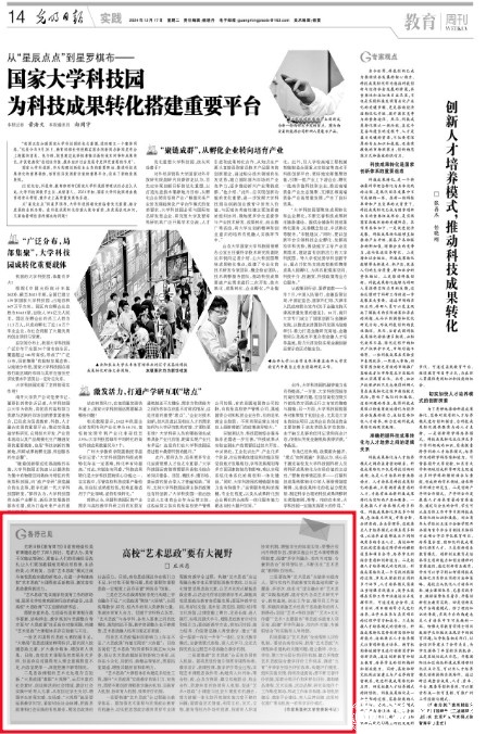 四是要建立“艺术思政”全流程育人评价机制。要结合高校实际,找准“艺术思政”大课程体系建构的关键问题,建立教师、学生、澳门银河官网 、第三方分层分类评价机制,建立多维度艺术思政综合教学评价工作体系,推进“五育”并举学生综合评价改革,构建评价模型、组织实施反馈、持续改进提高;要不断完善评价机制,探索分类评价和多样化评价,建构精品课程、艺术实践、活动品牌、研究高地四个工作维度联动,形成工作体系构建、体制机制建设、载体平台建设、育人品牌创建、成果转化推广等有机统一的科学评价模式。