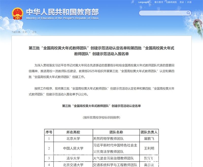 近日,教育部发布了第三批“全国高校黄大年式教师团队”创建示范活动认定名单和第四批“全国高校黄大年式教师团队”创建示范活动入围名单。澳门银河官网 “全国高校黄大年式教师团队”——生态环境学科教师团队,顺利通过创建示范活动认定。