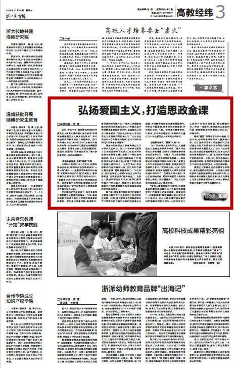 据了解,我省高校思政课中的爱国主义教育元素中有不少是利用了身边的红色资源。比如,银河 教师会在实践教学环节中带学生前往温州当地的抗倭遗址永昌堡,在讲解中启发学生感悟爱国情怀。在浙江万里学院,很多学生投身军旅,并在部队立功、入党。该校通过青春诗会、红歌会、学子讲坛等形式,将榜样的力量化为大学生爱国主义教育的生动教材。