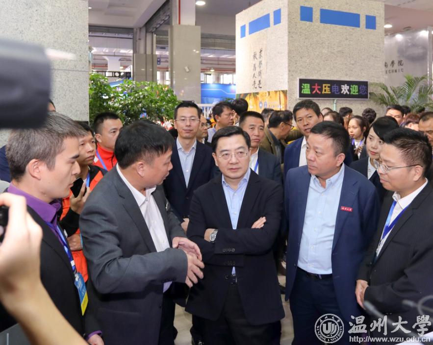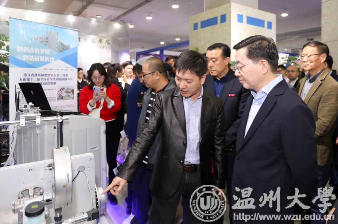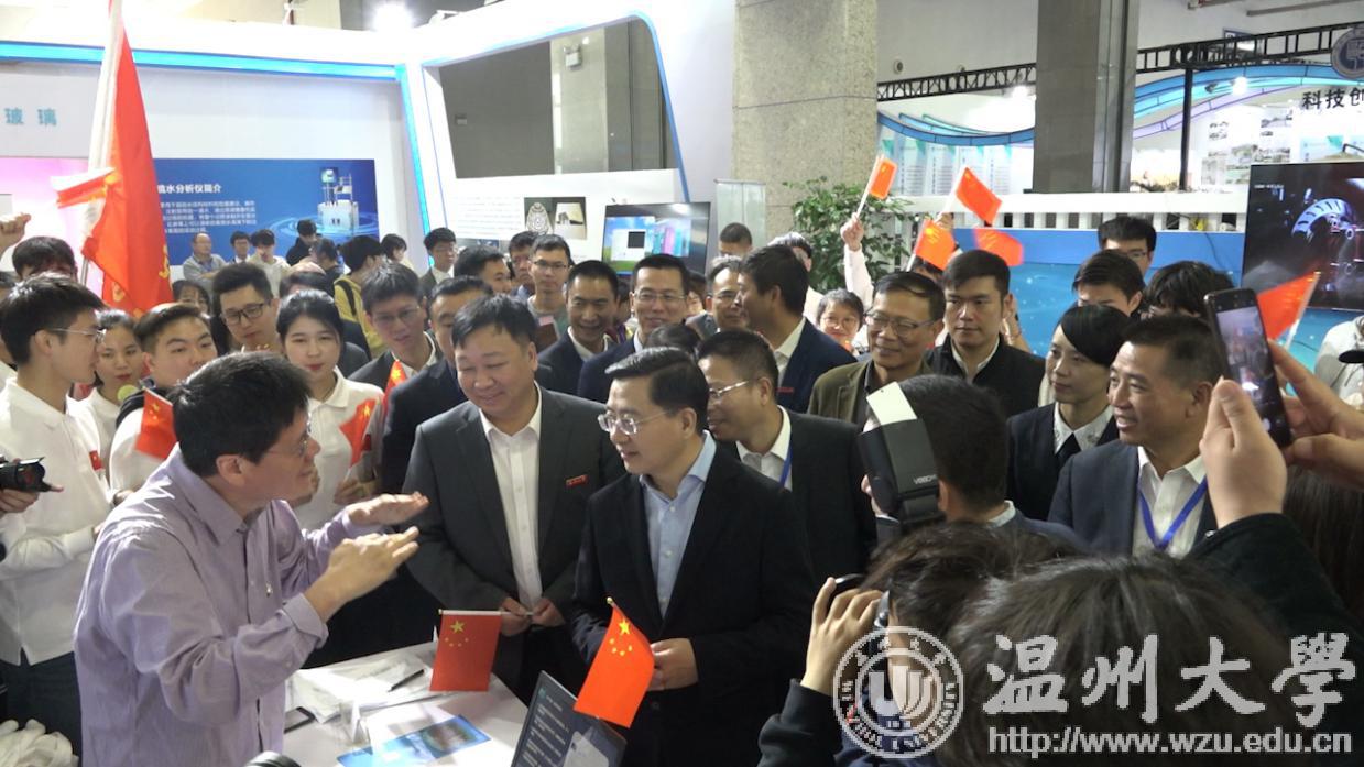 参展期间,澳门银河官网 党委书记谢树华、校长赵敏等多位校领导先后来到展馆慰问参展师生。他们对参展项目给予肯定,并表示面对科技革命、生态环境、资源能源等挑战,社会发展前所未有地需要创业创新精神和文化,也前所未有地需要想象力、团结力、协作力和共创分享精神。鼓励师生把握双创高质量发展机遇,打造创业创新的人才高地、技术高地和创意高地,进一步推动温州“双创”的繁荣。