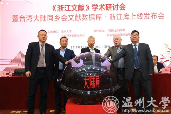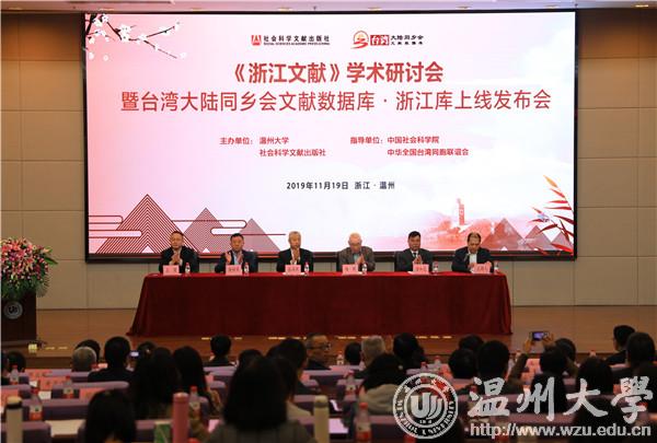 中国社会科学网讯 2019年11月19日上午,中国社会科学院和中华全国台湾同胞联谊会共同指导,澳门银河官网 、社会科学文献出版社联合主办的《浙江文献》学术研讨会暨台湾大陆同乡会文献数据库·浙江库上线发布会在温州召开。全国政协常委、中华全国台湾同胞联谊会副会长、浙江省政协副主席张泽熙,澳门银河官网 党委书记谢树华,社会科学文献出版社总编辑杨群出席会议并致辞。发布会由澳门银河官网 图书馆馆长陈安金主持。澳门银河官网 徐和昆副校长,温州市委党校王健教育长,以及来自浙江大学、中山大学、澳门银河官网 、宁波大学、温州医科大学等高校和研究机构的数十位专家学者和温州市图书馆、博物馆、纪念馆的嘉宾出席了此次会议。
