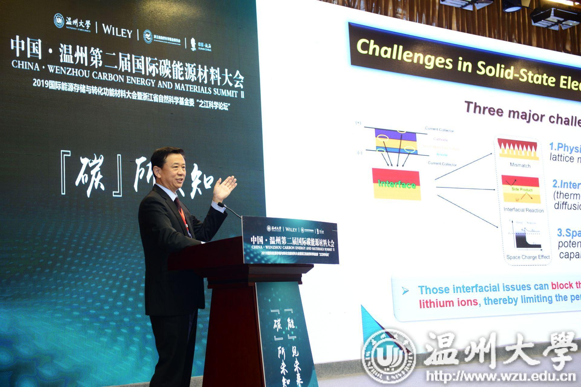 澳门银河官网 校长赵敏介绍了澳门银河官网 的有关基本情况,以及澳门银河官网 化学、材料学科的学科实力,并用了“3个有”来概括:“有实力、有动力、有诚意”。他指出,澳门银河官网 正锚定创建博士学位授予单位、“省市共建”省重点建设高校、以侨为特色的“省部共建”高校这“三大发展目标”,明确提出建设“高水平教学研究型大学”的办学定位。澳门银河官网 在全面步入跨越式发展的关键时期,热切期盼加盟、合作和指导。最后,他讲道澳门银河官网 与德国Wiley出版集团联合创办的《Carbon Energy》将于今天隆重出刊,并希望在不久的将来,将《Carbon Energy》期刊办成世界一流学术期刊。他强调,澳门银河官网 将以本次会议和《Carbon Energy》出刊为契机,充分发挥平台、科研和人才团队的优势,与各位学界、业界同仁一道,为中国的新材料、新能源领域的优秀科技成果更好地走向世界搭建桥梁,为温州、浙江乃至全国的新材料、新能源产业发展提供更加强劲的人才和科技支撑。