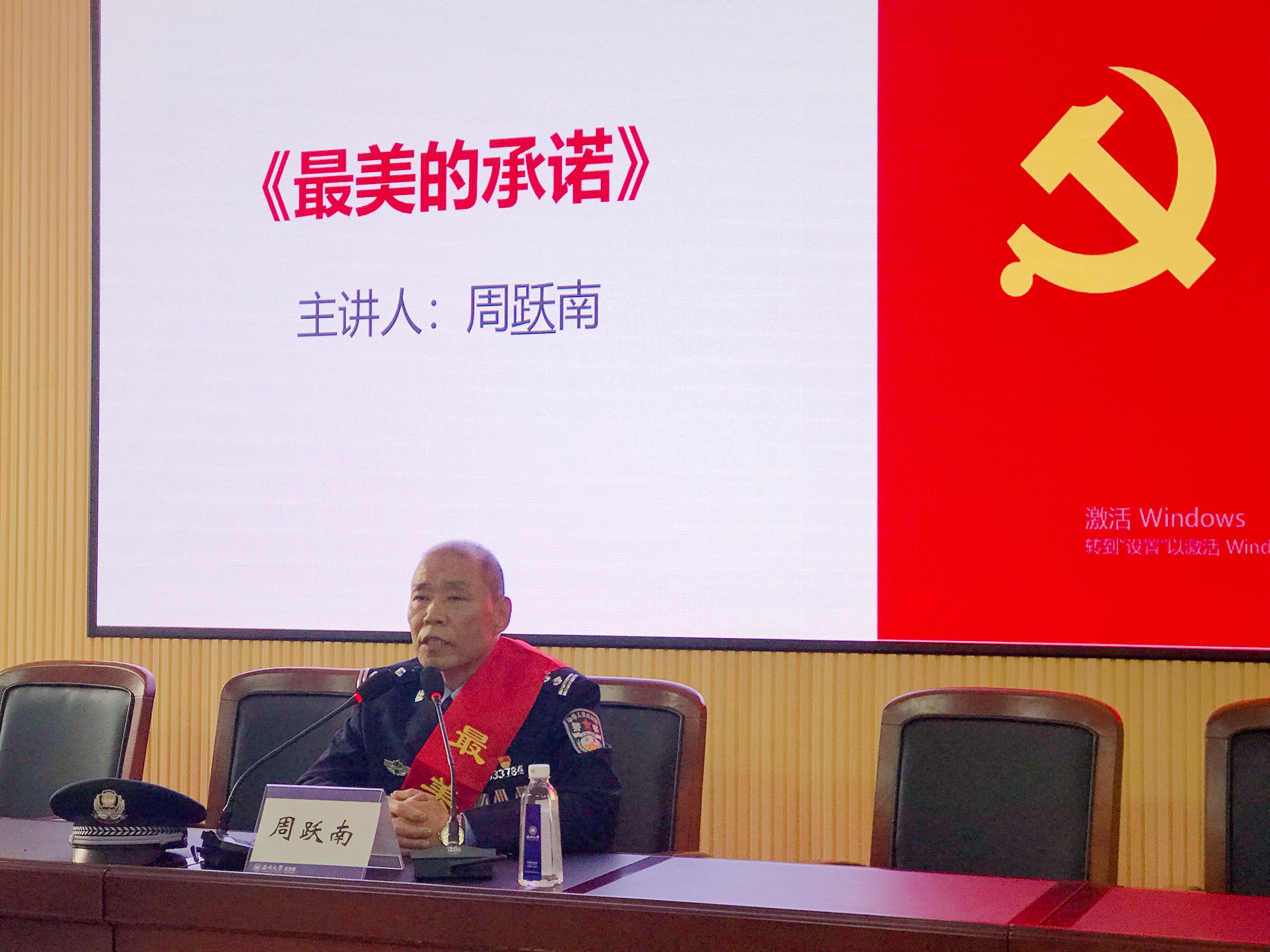 来自温州市公安局瓯海区分局的周跃南,用朴实的语言讲述了“最美的承诺”。在硝烟弥漫的战场,他与10位战友定下“生死盟约”,为了一句承诺,他做了牺牲战友父母的孝子,和其他战友一道,坚守孝心34年。