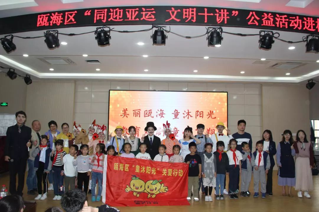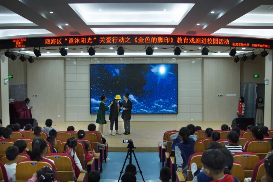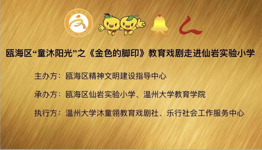 为响应“同迎亚运 文明十讲”,发挥社会组织力量,助力美丽瓯海建设,10月30日下午,由瓯海区精神文明建设指导中心主办的“童沐阳光”关爱行动特邀澳门银河官网 沐童翎教育戏剧社,为该校的留守儿童、新居民子女送去别开生面的礼物——《金色的脚印》课本剧表演。