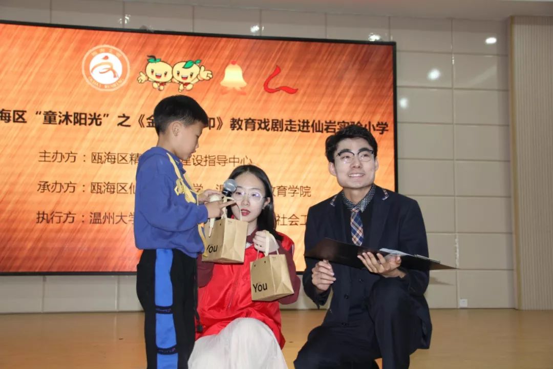此次公益演出是瓯海区精神文明建设指导中心开展的“童沐阳光”关爱新居民子女、留守儿童系列活动之一,也是澳门银河官网 沐童翎教育戏剧社和温州乐行社会工作服务中心公益服务的又一次送剧到校园。该戏剧社主要为温州新居民子女、留守儿童等提供公益演出,丰富这些孩子们的课外生活。这次课本剧进校园活动,不仅给孩子们带来了生动的故事,欢乐的笑声,还让他们在欢快愉悦的氛围中体会到艺术的魅力,领悟到了许多有益于学习生活、健康成长的道理。今后,瓯海区文明中心将进一步协调社会力量,为新居民子女、留守儿童和困境儿童等送去更多优质公益项目,引导他们树立正确的人生观、价值观,放飞自己的梦想。