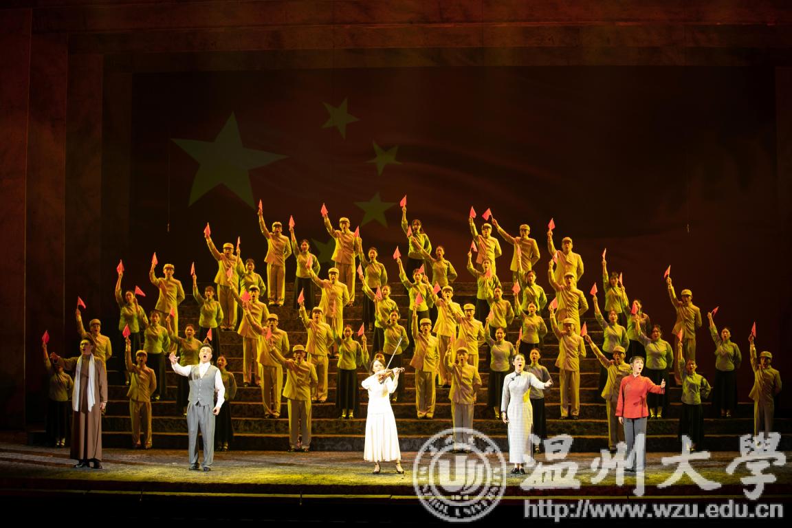 国旗是国家的象征和标志,是民族精神、爱国主义精神的集中体现。澳门银河官网 把“国旗的诞生”作为党史、新中国史教育的重要一课,爱国主义教育的鲜活教材,充分挖掘浙江红色“三地”政治资源,以澳门银河官网 校友、五星红旗设计者曾联松投身革命和设计国旗的故事为蓝本,精心打造爱国歌剧《五星红旗》。200多名师生共同参与演绎,历时4个多月艰苦排练,于10月7、8日隆重试演,为新中国成立70周年献上澳门银河官网 的红色经典之作。