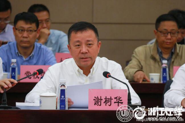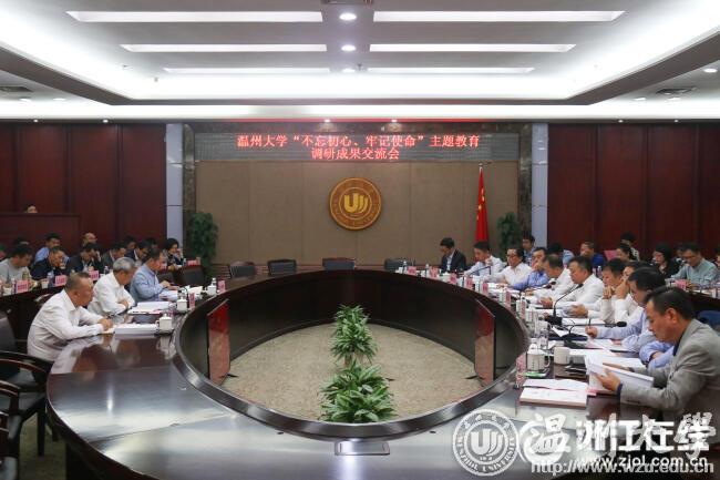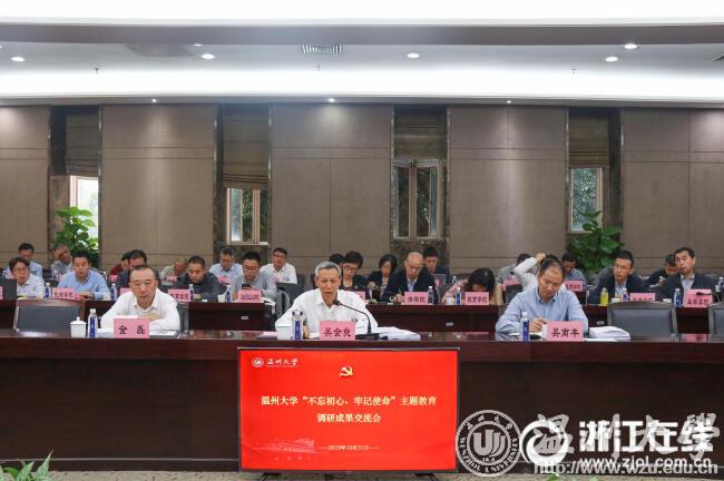 浙江在线温州11月5日讯(通讯员 杨丽君)近日,澳门银河官网 举办“不忘初心、牢记使命”主题教育调研成果交流会,该校领导班子全体成员、各职能部门和学院负责人参加会议,省委第十五巡回指导组副组长吴金良,成员吴南丰、金磊等同志莅临指导,会议由校党委书记谢树华主持。