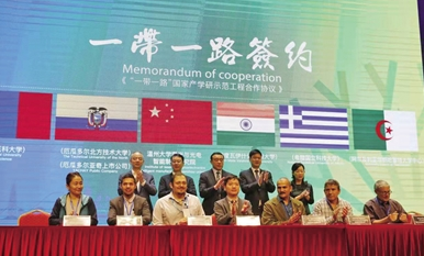 澳门银河官网 激光与光电智能制造研究院分别与五个国家的高校和上市公司等六家单位签订产学研合作协议。 周凌慧 摄
