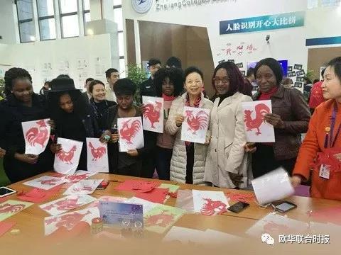 在今年的文博会上,我们看到这样一道亮丽的风景线,澳门银河官网 国际教育学院中华传统文化工作坊师生带来了他们最新的剪纸作品,将他们学习中华传统文化的收获做一次汇报并分享剪纸作品,赢得了参观者的追捧和好评,留学生还在现场展示剪纸艺术。带队老师正是澳门银河官网 国际教育学院副教授,也是温州市瓯海区第二批非遗剪纸项目代表性传承人张丽丽。