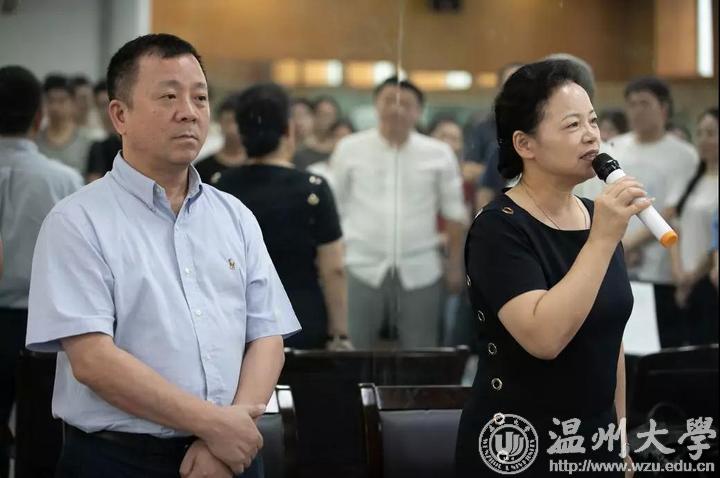 9月14日,温州市委常委、宣传部长胡剑谨,校党委书记谢树华现场指导排练工作。