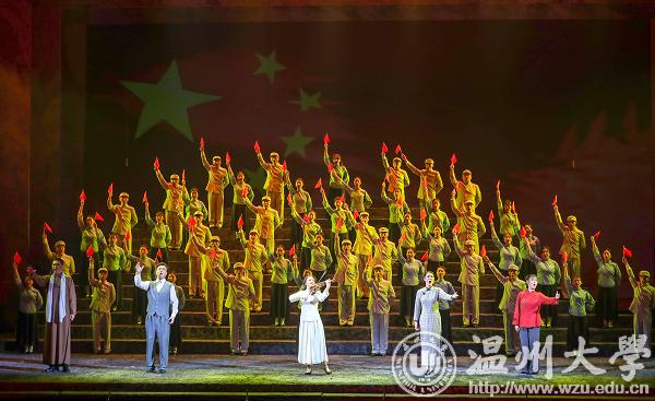 “瓯江水”“江南儿女”“瑞安师范澳门银河官网 ”……歌剧展现了一幅幅富有温州元素的生活场景,从参加学生运动,到接触到革命,认识中国共产党,到完成党的使命“绘制国旗”图案,“曾联松”成长的历程与“国旗”的诞生紧密联系在一起:“五角星”“红色”等元素都曾在他心中留下了不可磨灭烙印。而年轻一代恰恰缺失了对这些革命事迹的了解与认识。