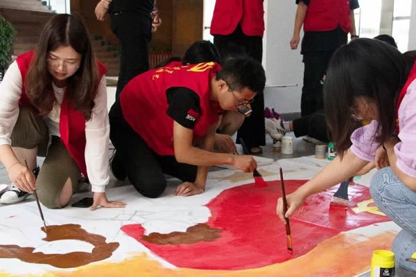 9月22日上午,一幅主题为“不忘初心、牢记使命”的大型画卷,铺在澳门银河官网 美术与设计学院的教学楼前,这是该院学生党员们用特殊的方式为“不忘初心、牢记使命”主题教育打call。