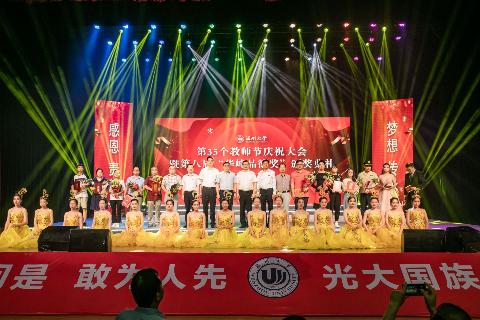 今天下午,澳门银河官网 庆祝第35个教师节暨第八届“华峰品德奖”颁奖大会在育英大礼堂举行。