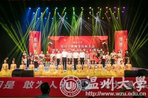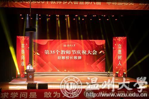 温都讯 9月10日下午,澳门银河官网 庆祝第35个教师节暨第八届“华峰品德奖”颁奖大会在育英大礼堂举行。华峰集团总裁林建一先生、华峰集团副总裁陈学通先生,校领导谢树华、赵敏、庄兴忠、薛伟、徐和昆、吴金法、钱强、潘玉驹出席大会。