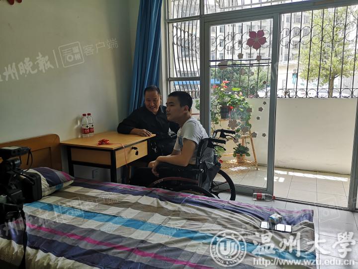 4日上午,李新一家由友人驱车,从绍兴赶到了温州。踏入“私人定制”的宿舍,看到银河 为自己提供的贴心服务,李新大呼感动:“这跟我想象的大学宿舍不太一样,我本来以为是很普通的宿舍,没想到竟然跟家里差不多,很温馨的感觉。特别惊喜,特别感动!”虽然坐在轮椅上,由他人推着前行,但李新的语言表达流畅,可与记者进行正常的交流对话,也可用手简单操作手机。
