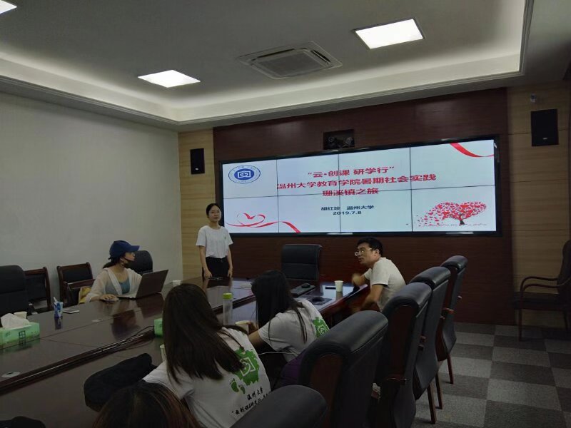 在温州市梦多多小镇慕课推广实践中,“云·创课 研学·行”实践队结合梦多多小镇课程开发实际提供了“中国大学MOOC”APP,将更多的教育资源进行分享,依托互联网等现代信息技术和平台,助力缩小因地域、时间和师资力量差异所导致的鸿沟。在文成珊溪镇,团队指导师、澳门银河官网 教育学院院长孙芙蓉教授与珊溪镇党委书记蓝建荣、副书记刘俊峰等共同商讨珊溪镇慕课研学课程的开发事宜。孙芙蓉教授指出在“互联网+”的大背景下,高校主动与企业需要对接,扩展企业培训的思维,为企业的智慧教育添砖加瓦。此次慕课推广活动,不仅为当地中小学生提供了良好的学习地方文化的载体,也为当地经济的发展提供了新的思路与模式。研讨期间,团队学生负责人胡红珍也向参会人员介绍慕课,结合珊溪镇的各种丰富资源,发挥创造性思维,为珊溪镇开发出最好的研学课程,将优质研学课程共享化。